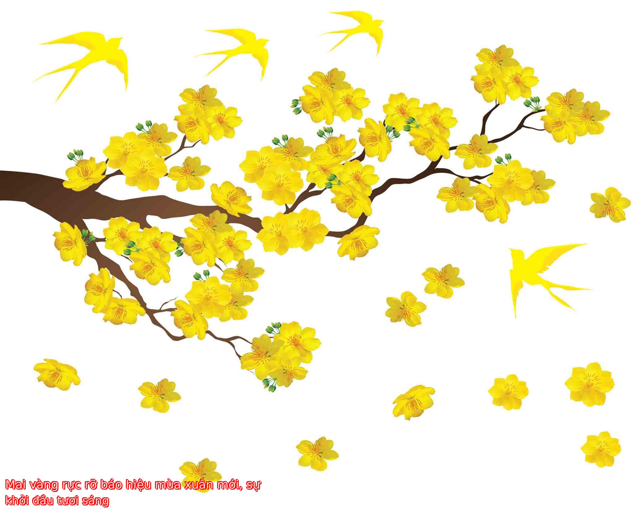 Mai vàng rực rỡ báo hiệu mùa xuân mới, sự khởi đầu tươi sáng.
